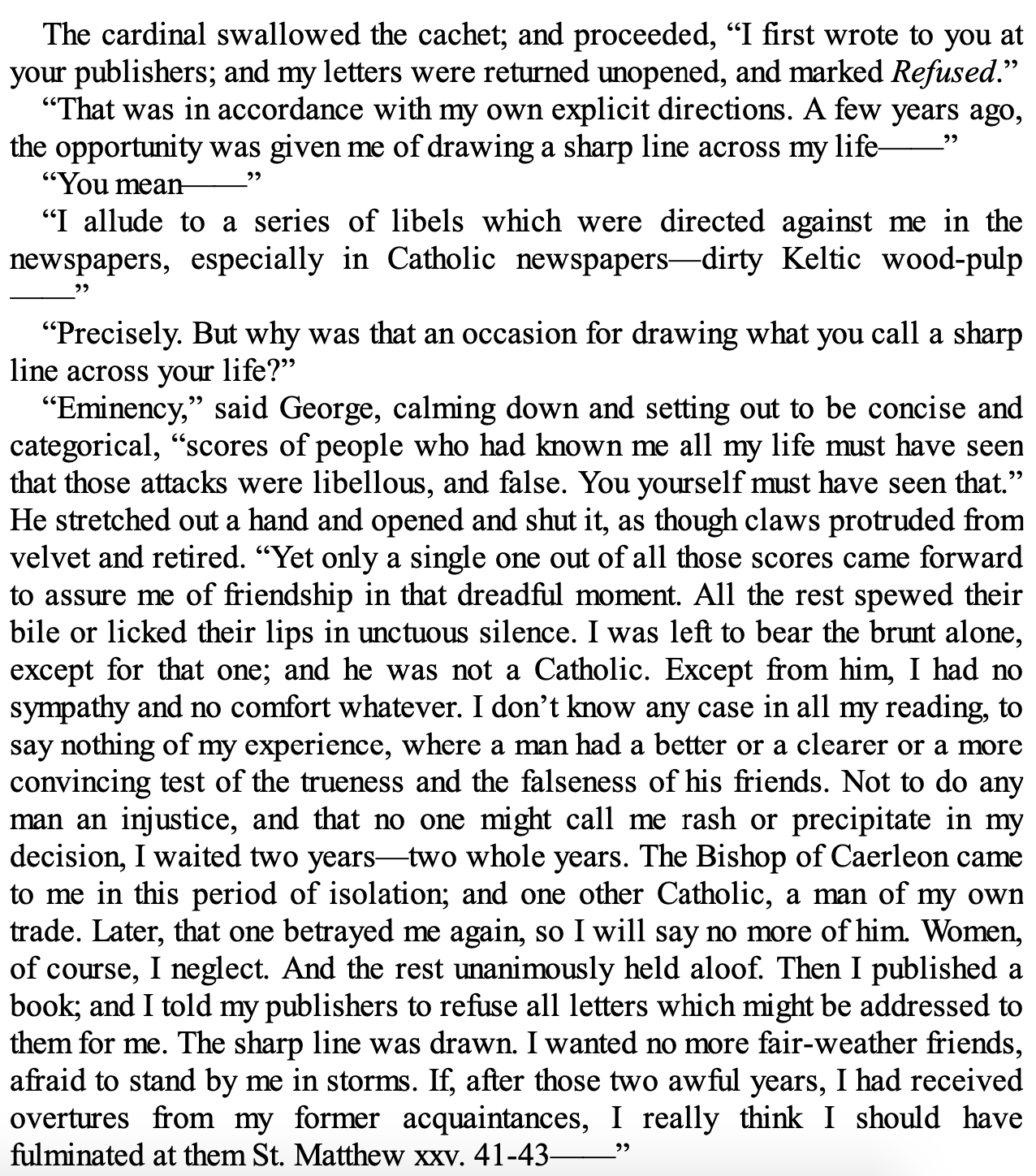 Hadrian the Seventh: extracts (4) January 13, 2021baron corvo baron corvoCatholicismFrederick Rolfehadrian the seventhphilosophical literatureShare this: Click to share on X (Opens in new window) X Click to share on Facebook (Opens in new window) Facebook Click to print (Opens in new window) Print Click to email a link to a friend (Opens in new window) Email More Click to share on Reddit (Opens in new window) Reddit Like Loading... Related